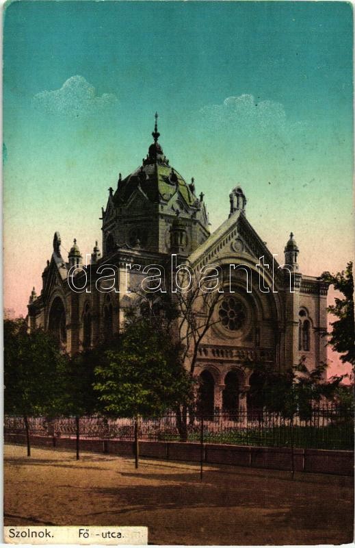 Szolnok, Fő utca és zsinagóga (EK) https://www.darabanth.com/de/316-Fernauktion/316.0/Ansichtskarten/Ungarn~1500005/Szolnok-Fo-utca-es-zsinagoga-EK~II1731875