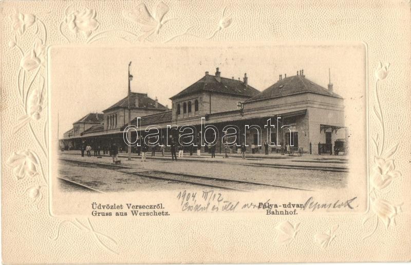 Beschreibung: Versec, Vrsac; vasútállomás / Bahnhof / railway station. Art Nouveau, floral, Emb.