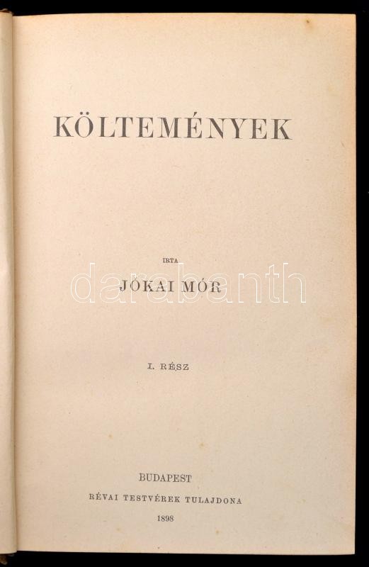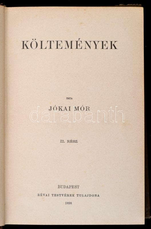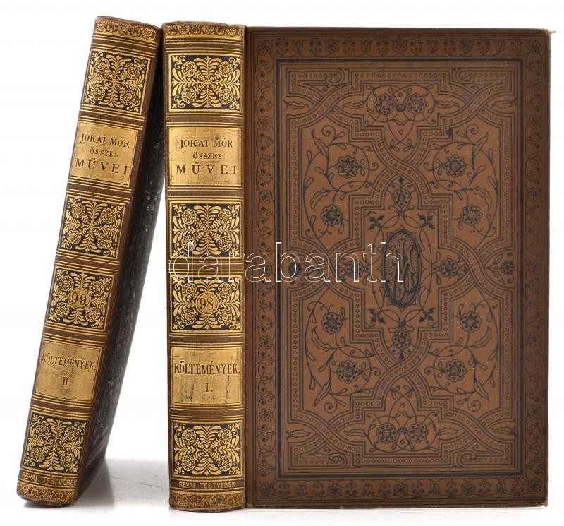Jókai Mór összes művei sorozat 2 kötete: XCVIII. és XCIX. kötetek, Költemények I.-II. Bp., 1898, Révai. Nemzeti kiadás. Kiadói aranyozott egészvászon-sorozatkötés, Gottermayer-kötés, jó állapotban.