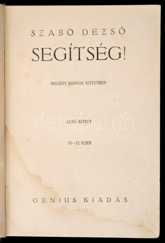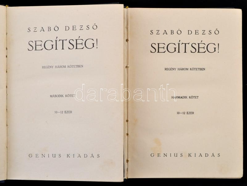 Szabó Dezső: Segítség! I-III. kötet, h. n., é. n., Genius. Kiadói egés... https://www.darabanth.com/de/316-Fernauktion/316.0/Bucher/Bucher-Andere-kuriositaten~2500016/Szabo-Dezso-Segitseg-I-III-kotet-h-n-e-n-Genius-Kiadoi-egeszavaszon-kotesben~II1733158