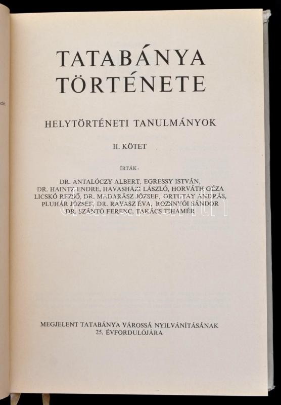 Tatabánya története. Helytörténeti tanulmányok II. kötet. Szerk.: Gombkötő Gábor-Horváth Géza-Dr. Ravasz Éva-Rozsnyói Sándor-Dr. Szántó Ferenc. Tatabánya, 1972, Tatabányai Városi Tanács VB. Kiadói egészvászon-kötés, kiadói papír védőborítóban. Megjelent 2500 példányban. Csak II. kötet.