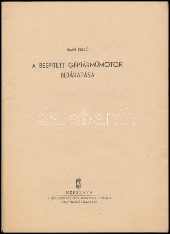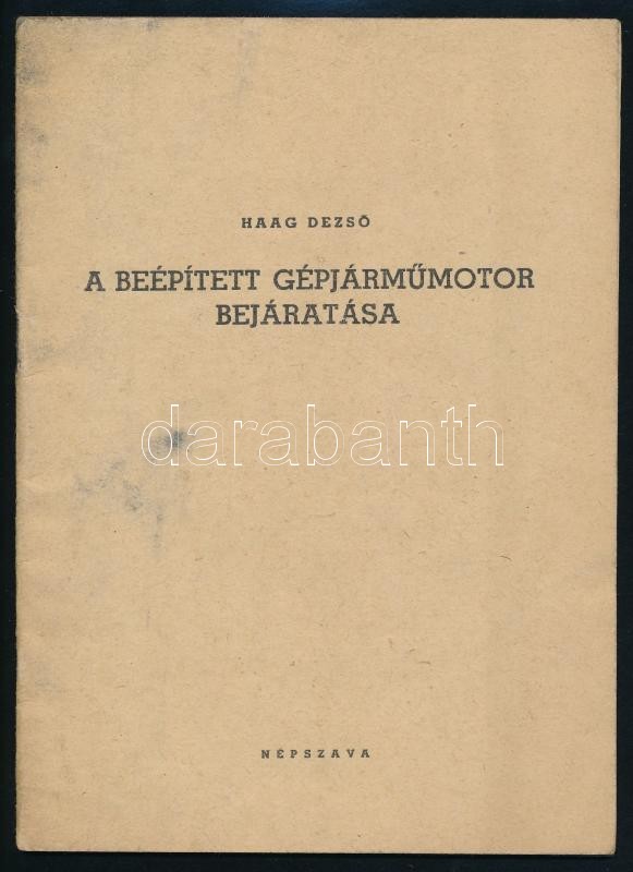 Haag Dezső: A beépített gépjárműmotor bejáratása. Bp., 1956, Népszava.... https://www.darabanth.com/de/316-Fernauktion/316.0/Bucher/Bucher-Technik~2500011/Haag-Dezso-A-beepitett-gepjarmumotor-bejaratasa-Bp-1956-Nepszava-Kiadoi-papirkote~II1736889
