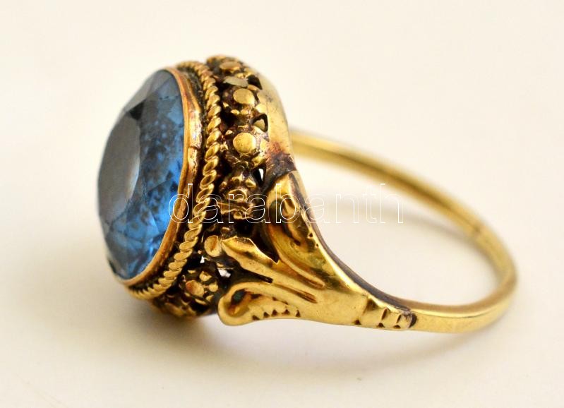 Beschreibung: Arany (Au) 14K gyűrű, szintetikus kővel, jelzett, méret: 51 bruttó: 3,8 g