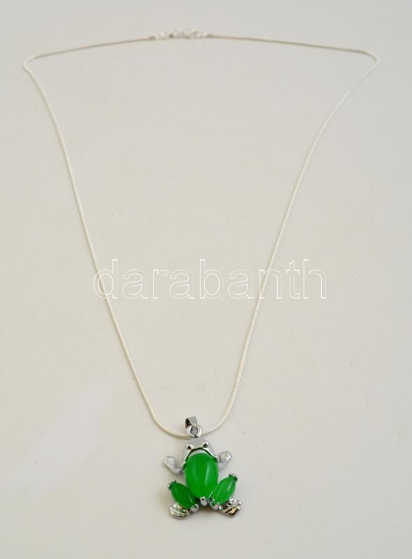 Beschreibung: Ezüst (Ag) kígyó lánc, jelzett, h: 60 cm, nettó: 5,2 g + fém foglalatos jáde medállal, 2x1,5 cm