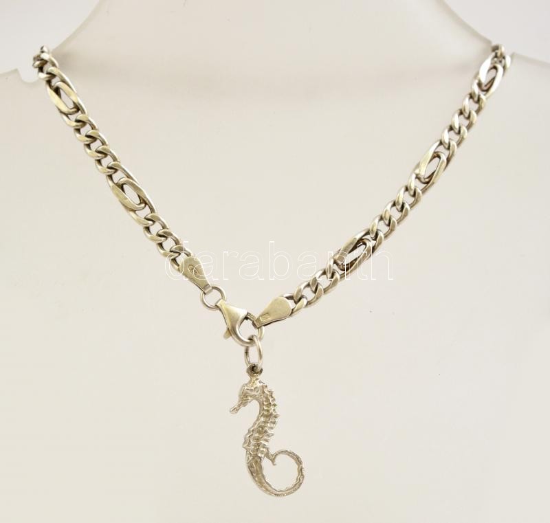 Beschreibung: Ezüst(Ag) figaro karkötő, tengeri csikó függővel, jelzett, h: 20 cm, 1,8x1,2 cm, nettó: 4,5 g