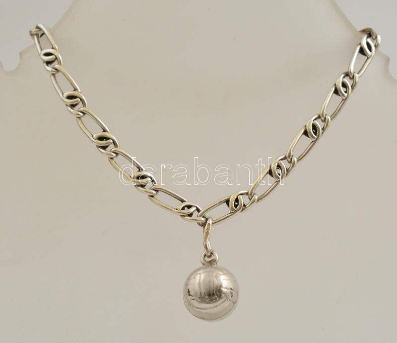 Beschreibung: Ezüst(Ag) hosszúkás szemű karkötő, vízilabda függővel, jelzett, h: 19,6 cm, 1,8x1,2 cm, nettó: 7 g