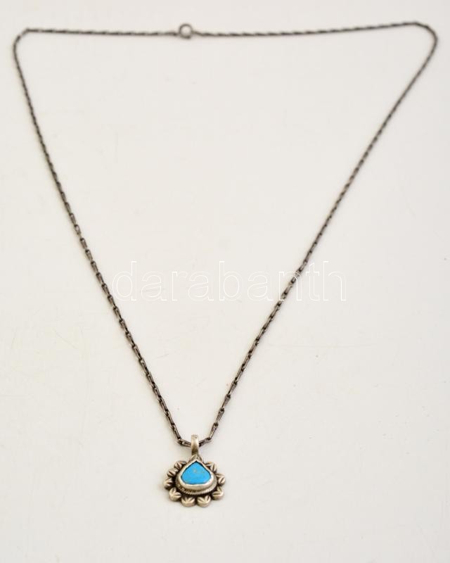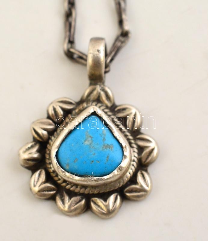 Beschreibung: Ezüst(Ag) lánc türkiz medállal, jelzett, h: 68 cm, bruttó: 13,1 g