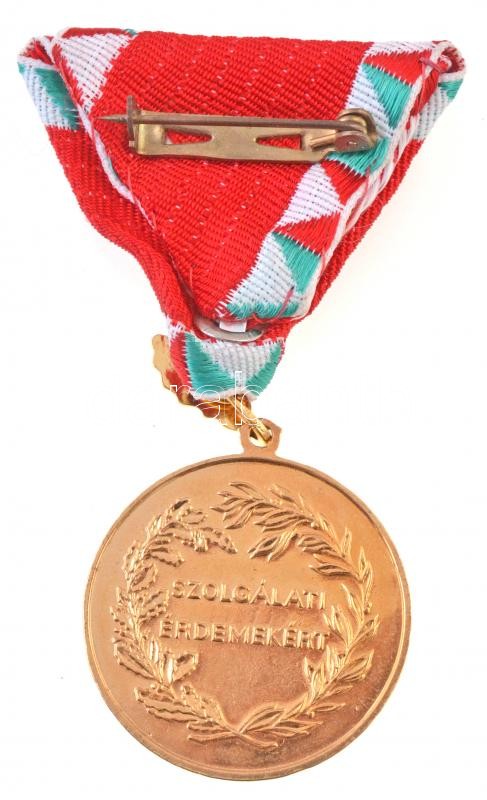 Beschreibung: 1992. "Szolgálati Jel (érdem után) I. osztálya" aranyozott tombak kitüntetés szalagon T:1-