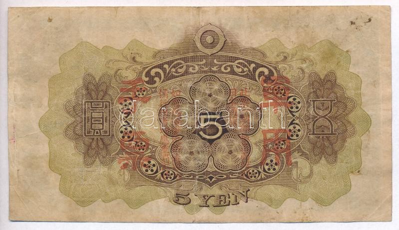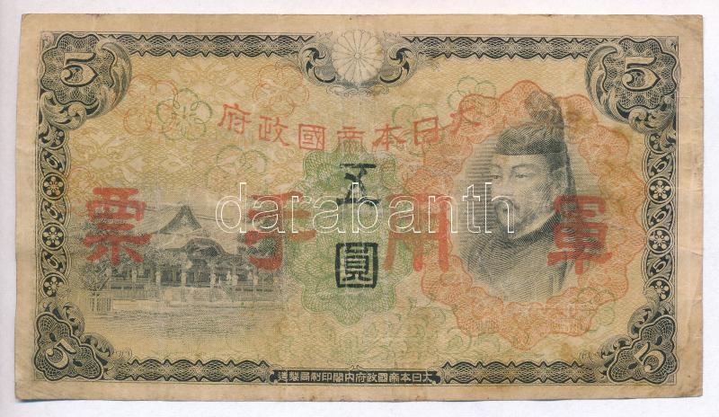 China / Japanese occupat... https://www.darabanth.com/de/316-Fernauktion/316.0/Numismatik/Weltweit-Banknoten~2000011/Kina-Japan-megszallas-1938-1944-5Y-TIII---China-Japanese-occupation-1938-1944-5-Yen-CVG~II1733849