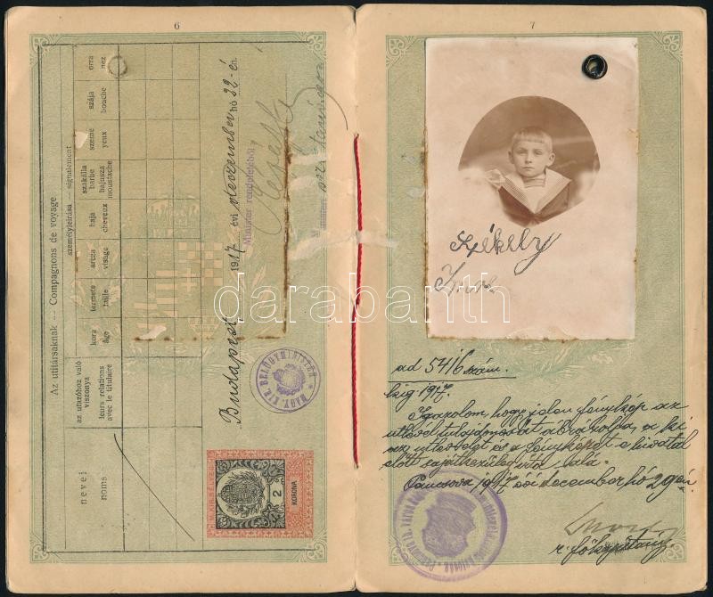 1917 Pancsova, Gyermek részére kiállított fényképes útlevél, sok bejeg... https://www.darabanth.com/de/317-Fernauktion/317.0/Andere-Sammelgebiete/Dokument~20/1917-Pancsova-Gyermek-reszere-kiallitott-fenykepes-utlevel-sok-bejegyzessel-passport~II1741983