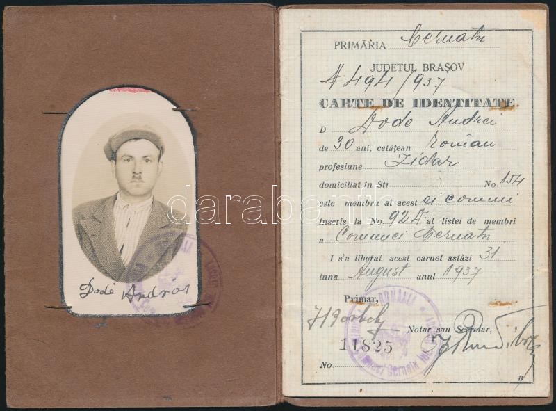 1937 Ro... https://www.darabanth.com/de/317-Fernauktion/317.0/Andere-Sammelgebiete/Dokument~20/1937-Roman-fenykepes-szemelyi-igazolvany-okmanybelyegekkel---1937-Romanian-ID~II1745430