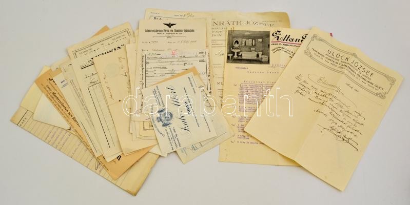 cca 1900-1930 Nagy erdélyi fejléces számla tétel. Nagyrészt Erdélyből származó 37 db számla, főleg Aradról / 37 mostly Transylvanian invoices. Mostly Arad.