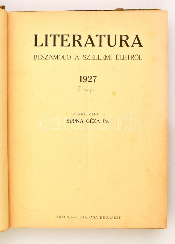 1927 A Literatura c. folyóirat teljes évfolyama bekötve félvászon köté... https://www.darabanth.com/de/317-Fernauktion/317.0/Andere-Sammelgebiete/Drucksachen~31/1927-A-Literatura-c-folyoirat-teljes-evfolyama-bekotve-felvaszon-kotesben~II1746827