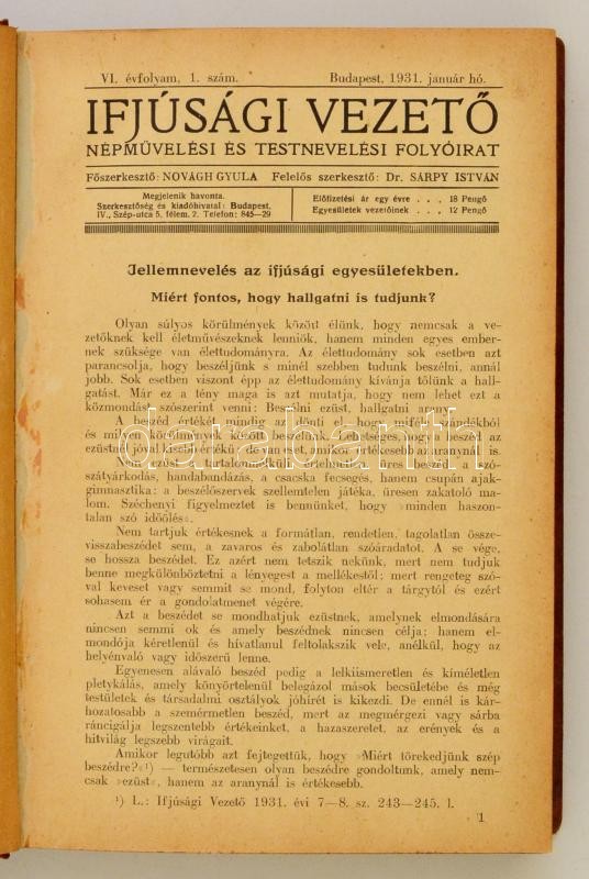 1932 Az Ifjúsági vezető c. folyóirat komplett évfolyama. Foltos egészv... https://www.darabanth.com/de/317-Fernauktion/317.0/Andere-Sammelgebiete/Drucksachen~31/1932-Az-Ifjusagi-vezeto-c-folyoirat-komplett-evfolyama-Foltos-egeszvaszon-kotesben~II1745452