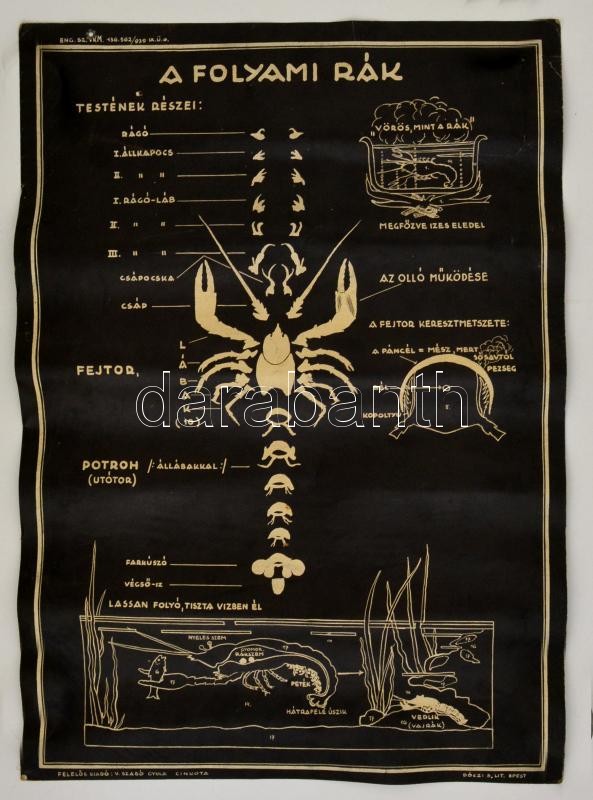 1939 Iskolai szemléltető plakát, a folyami rák és a kék szitakötő bemu... https://www.darabanth.com/de/317-Fernauktion/317.0/Andere-Sammelgebiete/Drucksachen~31/1939-Iskolai-szemlelteto-plakat-a-folyami-rak-es-a-kek-szitakoto-bemutatasa-kiadja-SzabC3~II1742448