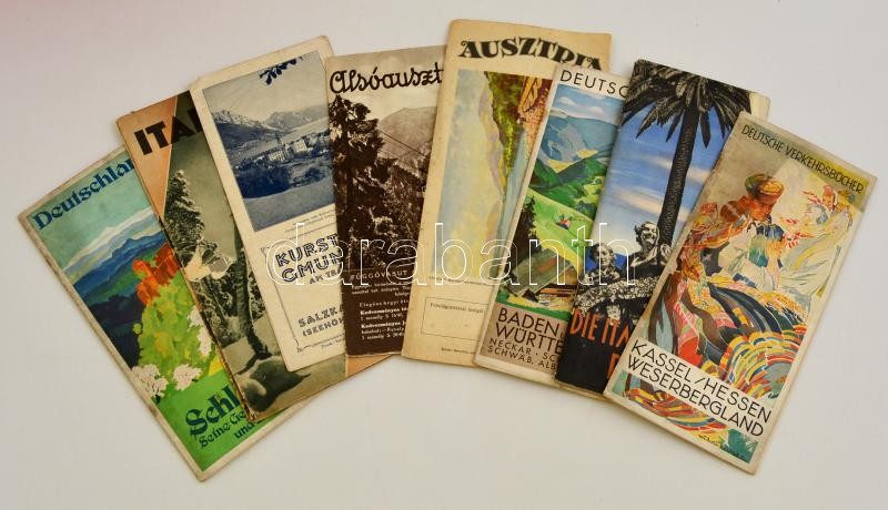 Beschreibung: cca 1930 Vegyes utazási prospektus tétel (Baden und Württemberg, Die italienische Riviera, Ausztria, Kassel - Hessen, stb.), 8 db