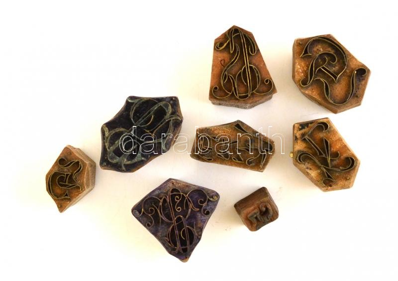 Beschreibung: Régi, monogramos pecsétnyomók, fa alapon réz betűkkel, 8db