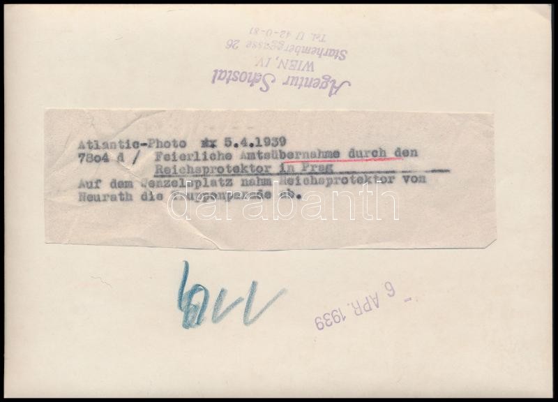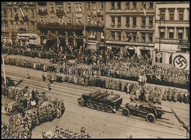 1939 Prága, Német katonák díszszemléje, Agentur Schostal fotó, hátolda... https://www.darabanth.com/de/317-Fernauktion/317.0/Andere-Sammelgebiete/Foto~23/1939-Praga-Nemet-katonak-diszszemleje-Agentur-Schostal-foto-hatoldalan-feliratozva-13x18~II1746839