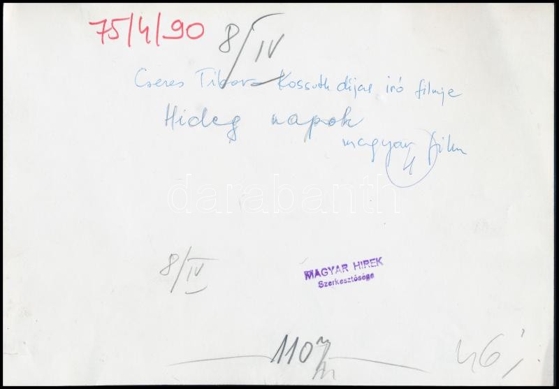 1966 Hideg napok, filmfotó, Magyar Hírek, hátulján feliratozva, pecsét... https://www.darabanth.com/de/317-Fernauktion/317.0/Andere-Sammelgebiete/Foto~23/1966-Hideg-napok-filmfoto-Magyar-Hirek-hatuljan-feliratozva-pecsettel-jelzett-17C39724-5-cm~II1746865