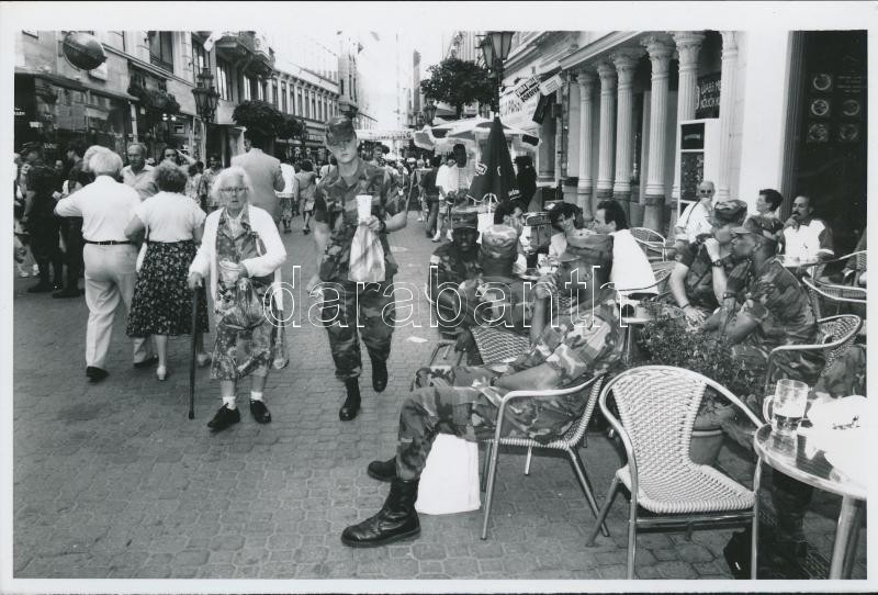 1990-es évek Budapest, Amerikai katonák a Belvárosban, Szandelszky Bél... https://www.darabanth.com/de/317-Fernauktion/317.0/Andere-Sammelgebiete/Foto~23/1990-es-evek-Budapest-Amerikai-katonak-a-Belvarosban-Szandelszky-Bela-felvetele-hatoldalan~II1746826