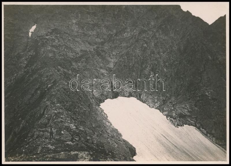 cca 1910 Magas-Tátra, a Vadorzó-hágó, Erdélyi Mór felvétele, hátulján feliratozva, 11,5×16 cm / cca 1910 Vysoké Tatry, the Mengusovské sedlo, with notes on its back, 11,5×16 cm