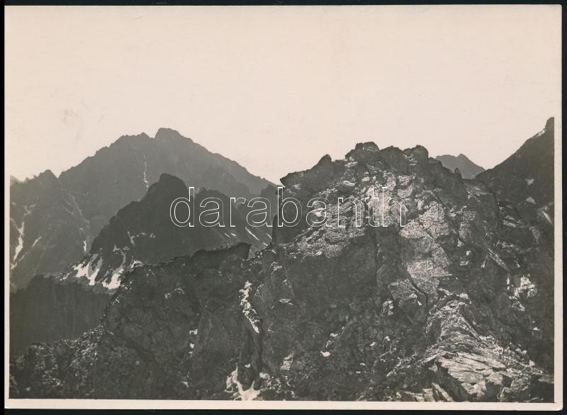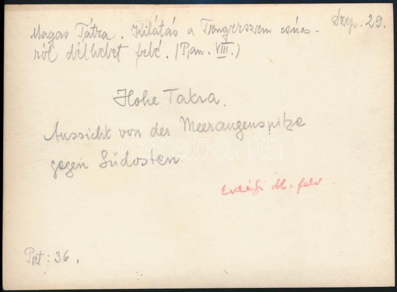 cca 1910 Magas-Tátra, kilátás a Tengerszem-csúcsról délkelet felé, Erdélyi Mór felvétele, hátulján feliratozva, 11,5×16 cm / cca 1910 Vysoké Tatry, theview from the Rysy towards southeast, with notes on its back, 11,5×16 cm