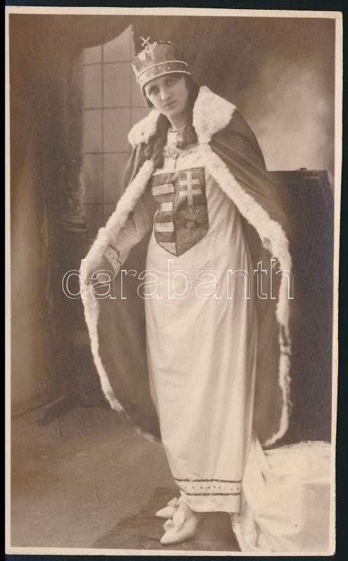 Beschreibung: cca 1920 Magyarország allegóriája, Jelzett fotólap. Skrabinecz Mezőkövesd.