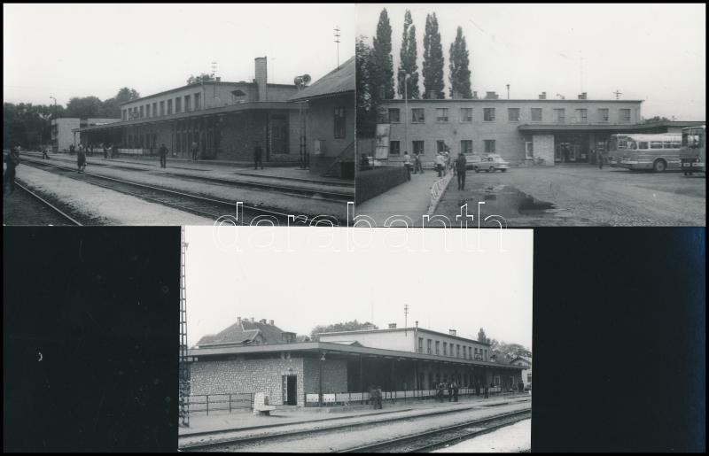 Beschreibung: cca 1960-1970 Linzbauer Tamás: A keszthelyi vasútállomás, 3 db fotó, hátuljukon feliratozva, pecséttel jelezve, 9×14 cm