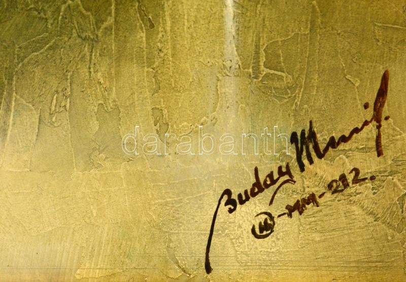 Beschreibung: Buday Mihály (1953-): Thália. Olaj, farost, jelzett, keretben, 70×50 cm