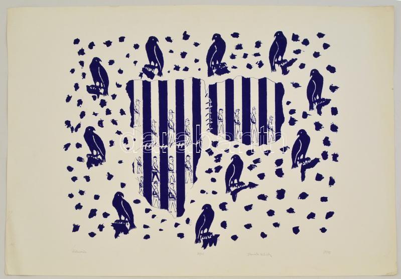 Beschreibung: Novák Mihály (?-): Háború. Szitanyomat, papír, jelzett, 38×48 cm