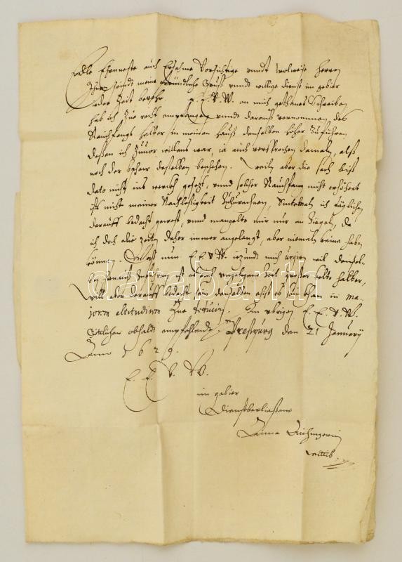 1629 Pozsonyi polgár levele azonosítatlan polgármesterhez személyes üg... https://www.darabanth.com/de/317-Fernauktion/317.0/Andere-Sammelgebiete/Historische-Dokumenten-Handschriften~21/1629-Pozsonyi-polgar-levele-azonositatlan-polgarmesterhez-szemelyes-ugyek-targyaban-nemet-n~II1748186