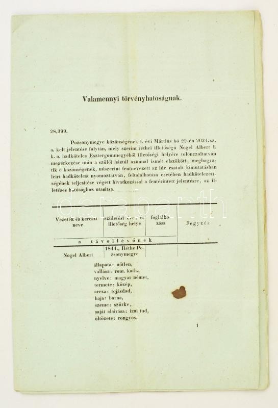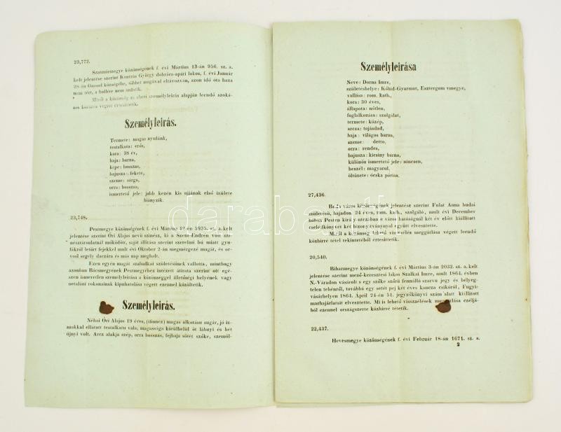 1865 M. Kir. Helytartótanács körlevele valamennyi törvényhatóságnak (Nógrád vármegye, Balassagyarmat), benne számos különféle tárgyban íródott körözvénnyel, 8 sztl. lev.