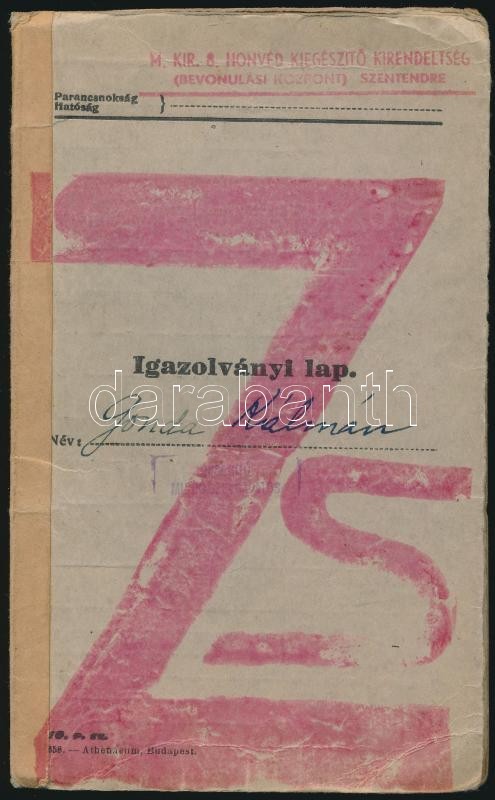 Beschreibung: 1942 Munkaszolgálatos igazolványi lap