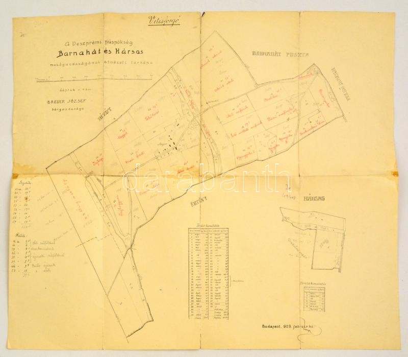 1929 Bp., A Veszprémi Püspökség Barnahát és Hársas mezőgazdaságának át... https://www.darabanth.com/de/317-Fernauktion/317.0/Andere-Sammelgebiete/Landkarten~30/1929-Bp-A-Veszpremi-Puspokseg-Barnahat-es-Harsas-mezogazdasaganak-atnezeti-terkepe-~II1746009