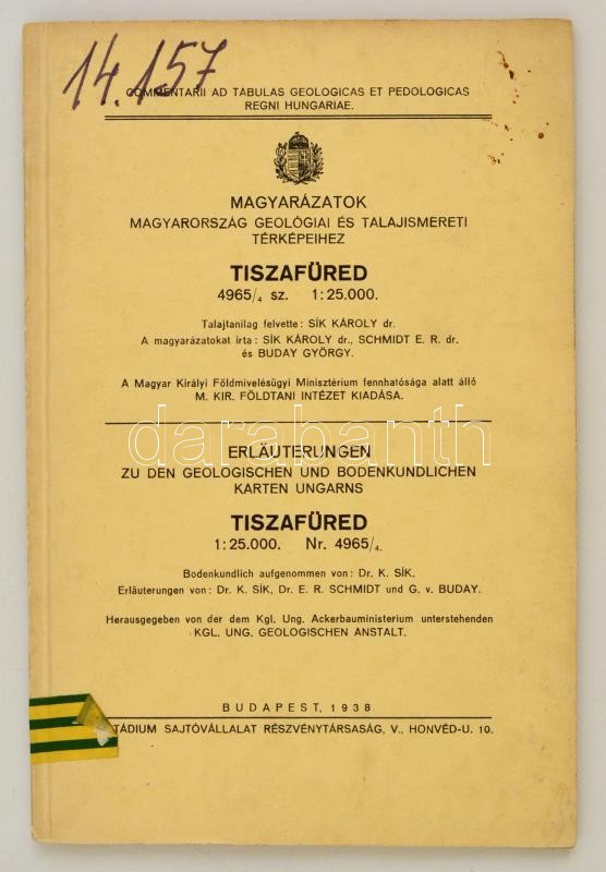 Beschreibung: Magyarázatok Magyarország geológiai és talajismereti térképeihez: Tiszafüred. Bp., 1938, M. Kir. Földtani Intézet.