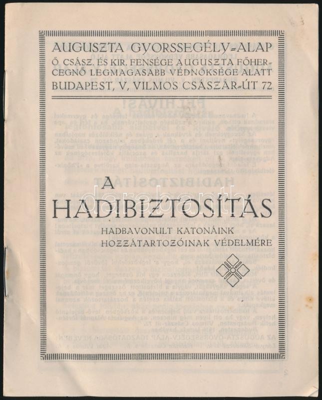 1916 Bp., Az Auguszta Gyorssegély-Alap hadi biztosításról szóló kiadvá... https://www.darabanth.com/de/317-Fernauktion/317.0/Andere-Sammelgebiete/Militaria~29/1916-Bp-Az-Auguszta-Gyorssegely-Alap-hadi-biztositasrol-szolo-kiadvanya-7p~II1747812