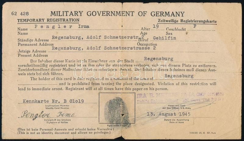 Németország szövetséges megszállás azonosító lap ujjlenyomattal https://www.darabanth.com/de/317-Fernauktion/317.0/Andere-Sammelgebiete/Militaria~29/Nemetorszag-szovetseges-megszallas-azonosito-lap-ujjlenyomattal~II1747759