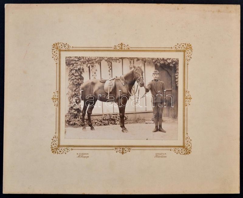 Beschreibung: cca 1900 Nagyemőkei Seregély Dezső (1867-1948) ezredes, szobrászművész fiatalkori fotója, Orsova, M. Alscher, 24x30 cm.