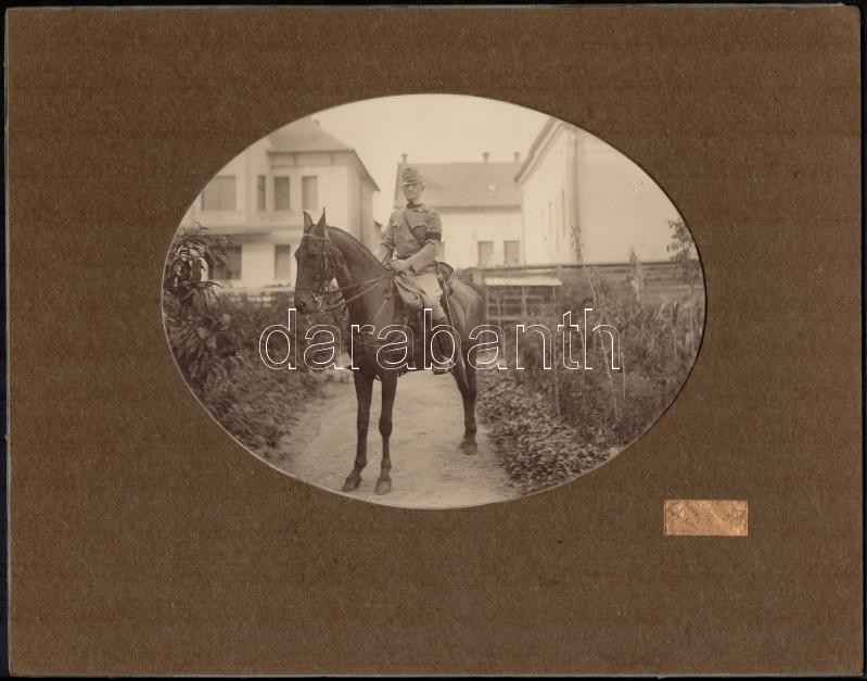 Beschreibung: cca 1910 Nagyvárad, Seregély Dezső K. u. K. ezredes fiatalkori lovas fotója, Dajkovits felvétele, kartonra kasírozva, 17x22,5 cm