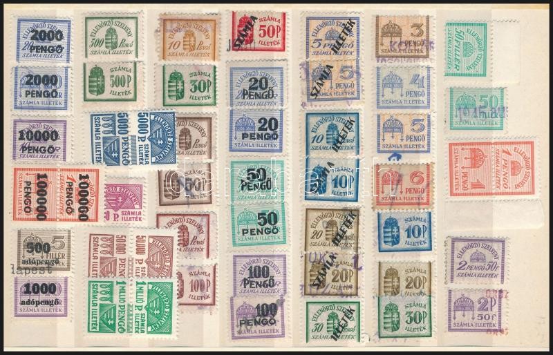 Számlailleték bélyegek kétoldalas közepes berakólapon https://www.darabanth.com/de/317-Fernauktion/317.0/Andere-Sammelgebiete/Stempelmarken~19/Szamlailletek-belyegek-ketoldalas-kozepes-berakolapon~II1746040