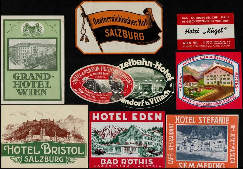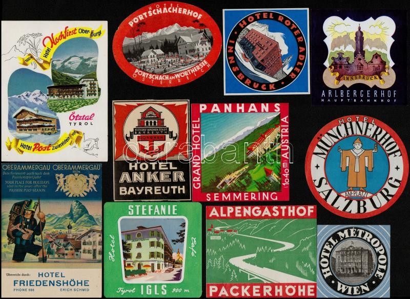 Beschreibung: 20 db különféle osztrák hotelcímke, köztük Art Deco