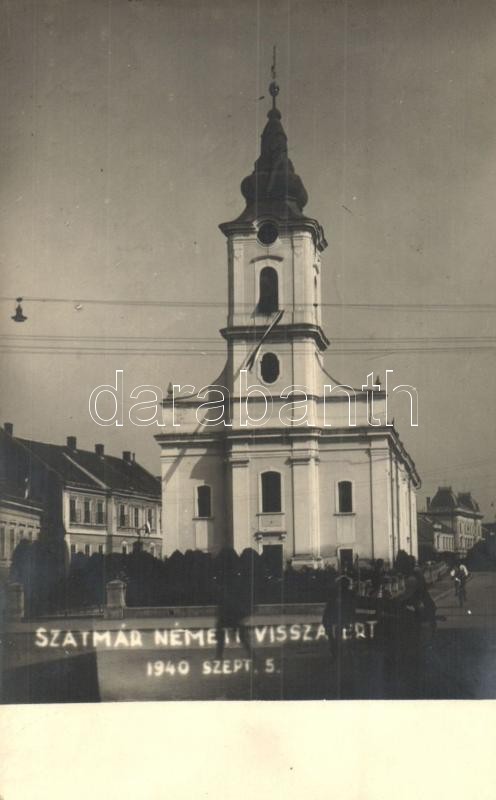 1940 Szatmárnémeti, Satu Mare; visszatért, templom / church, photo (ra... https://www.darabanth.com/de/317-Fernauktion/317.0/Ansichtskarten/Siebenburgen~1000005/1940-Szatmarnemeti-Satu-Mare-visszatert-templom-church-photo-ragasztonyom-gluemark~II1744467