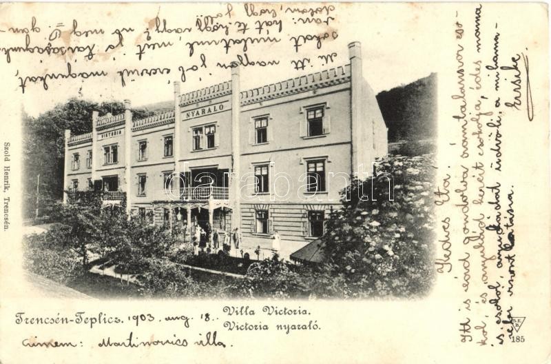 Trencsénteplic, Trencianske Teplice; Victoria nyaraló / villa (EK) https://www.darabanth.com/de/317-Fernauktion/317.0/Ansichtskarten/Slowakei~1000006/Trencsenteplic-Trencianske-Teplice-Victoria-nyaralo-villa-EK~II1742127