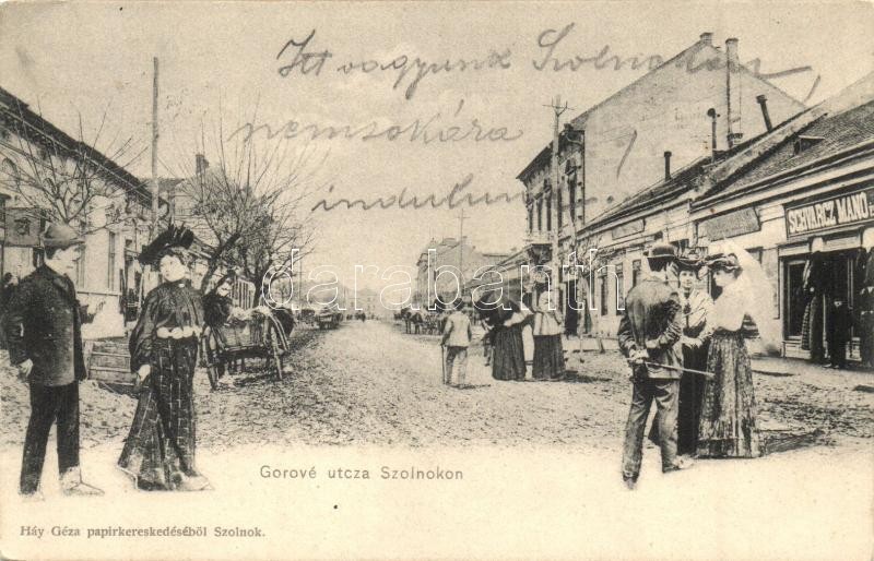 Szolnok, Gorové utca, Schvarcz Manó üzlete. Háy Géza kiadása (EK) https://www.darabanth.com/de/317-Fernauktion/317.0/Ansichtskarten/Ungarn~1000004/Szolnok-Gorove-utca-Schvarcz-Mano-uzlete-Hay-Geza-kiadasa-EK~II1741772