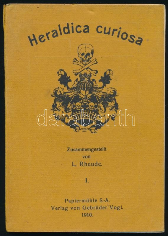 Heraldica curiosa. Eine Sammlung absonderlicher Wappenbilder. Zusammengestellt von L. Rheude. 1910, Papiermühle S.-A. Gebrüder Vogt. Kiadói papírkötés, jó állapotban