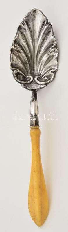 Beschreibung: Antik ezüst(Ag) szószos kanál, csont nyéllel, jelzett, h: 18 cm, bruttó: 24 g