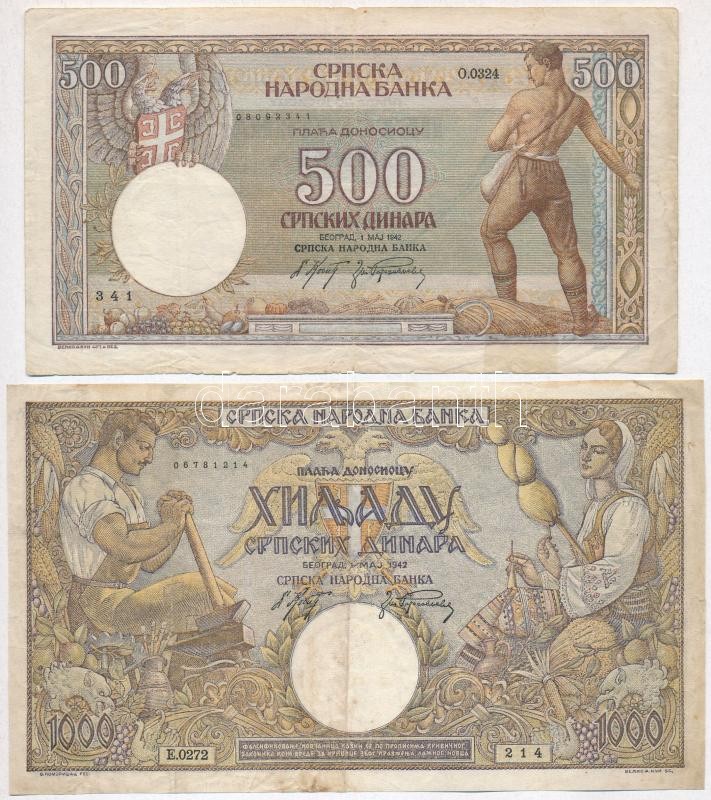 Serbia / German occupation 1942. 500 Dinara + 1000 Dinara C:F,VG sticked