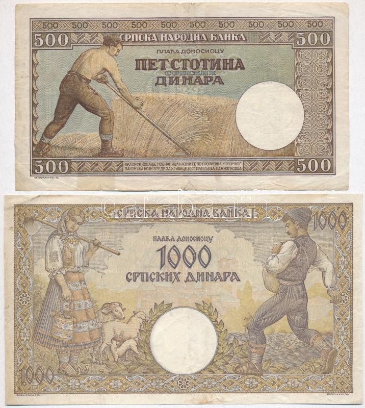 Szerbia / Német megszállás 1942. 500D + 1000D T:III,III- kis ragasztás... https://www.darabanth.com/de/317-Fernauktion/317.0/Numismatik/Weltweit-Banknoten~2000011/Szerbia-Nemet-megszallas-1942-500D-plus-1000D-TIII-III-kis-ragasztas--Serbia-German-occupati~II1743299