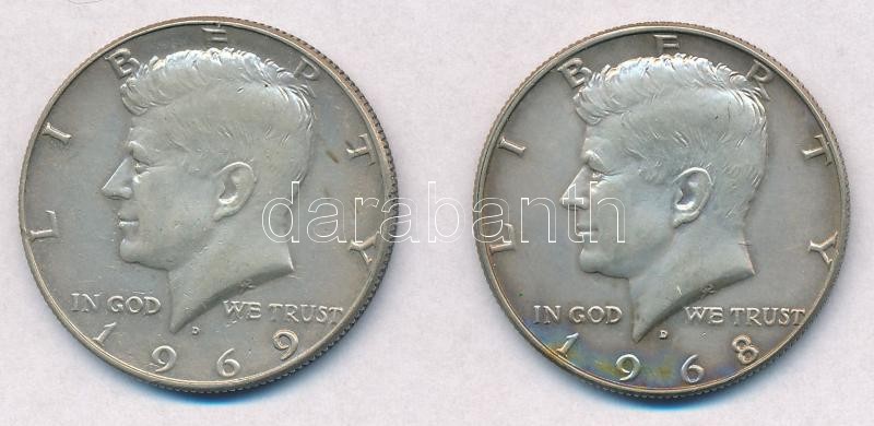 Amerikai Egyesült Államok 1968D-1969D 1/2$ Ag "Kennedy" (2xklf) T:1-,2... https://www.darabanth.com/de/317-Fernauktion/317.0/Numismatik/Weltweit-Munzen~2000012/Amerikai-Egyesult-Allamok-1968D-1969D-12USD-Ag-Kennedy-2xklf-T1-2--USA-1968D-1969D-12-Dollar~II1741056
