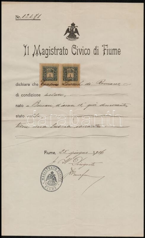 1906 Fiume, illetőségi bizonyítvány a város pecsétjével / Local docume... https://www.darabanth.com/de/318-Fernauktion/318.0/Andere-Sammelgebiete/Dokument~16/1906-Fiume-illetosegi-bizonyitvany-a-varos-pecsetjevel-Local-document-with-seal~II1754614
